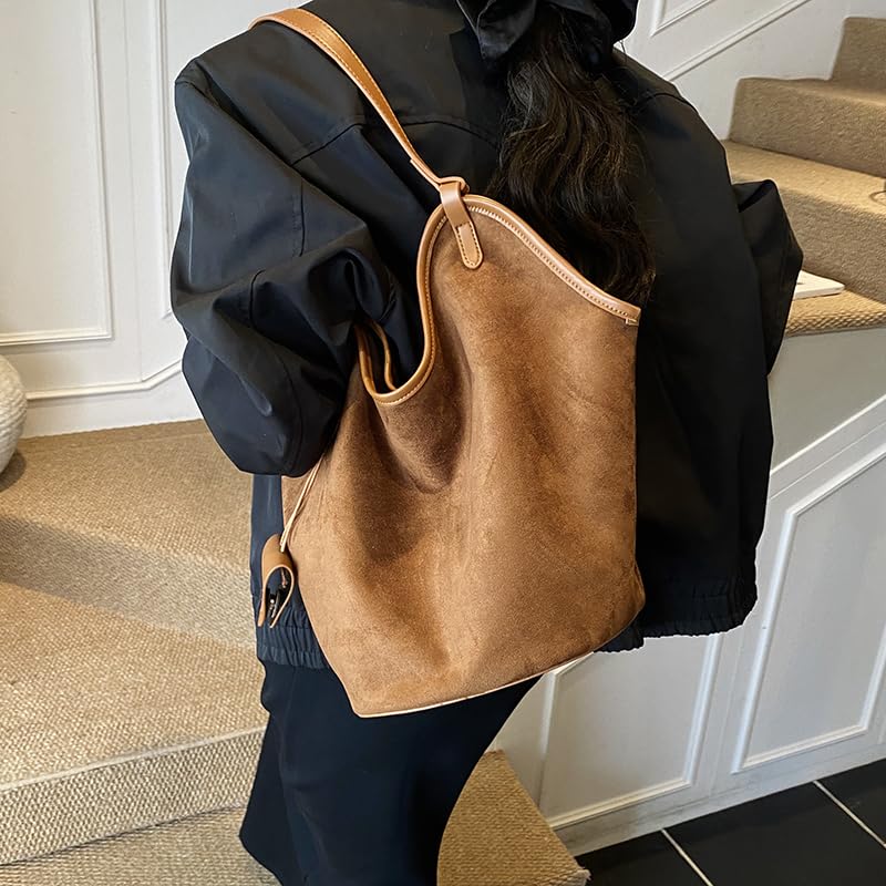 HOT ! Faux Suede Tote Bag for Women Stylish Suede Satchels Bag Hobo Handbag with Interior Pockets Slouchy Purse for Work Travel