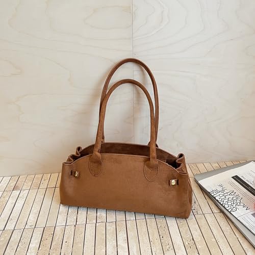 Women's Faux Suede Boston Bowler Suede Shoulder Purse East West Satchel Swing Shoulder Bag 1
