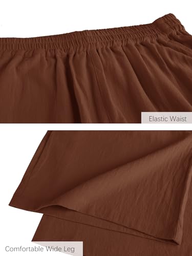 ECUPPER Womens Cotton Cropped Pants Loose Fit Wide Leg Capri Casual Plus Size Elastic Waist Trousers Brown 8 5