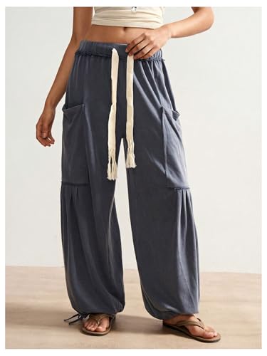 Women's Baggy Harem Pants Drawstring Waist Wide Leg Boho Casual Trousers Joggers with Pockets 5