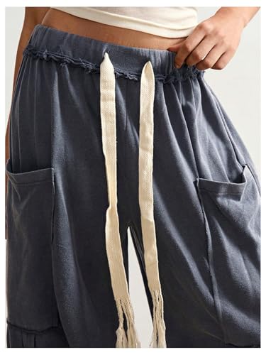Women's Baggy Harem Pants Drawstring Waist Wide Leg Boho Casual Trousers Joggers with Pockets 6