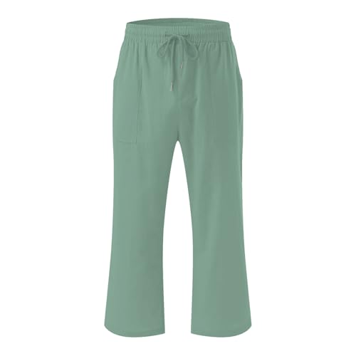 More information about Capri Pants for Women Linen Casual Summer 2025 Straight Leg Pant Loose Drawstring Elastic Waist Cropped Trousers