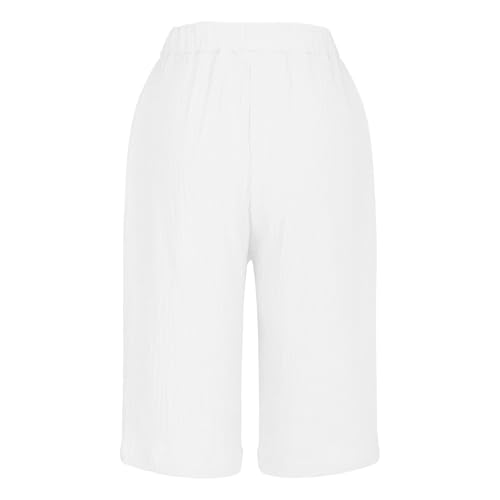 Women's Linen Shorts Elastic Waist Drawstring Bermuda Shorts for Women Knee Length 5