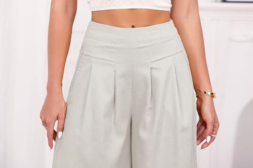 IDEALSANXUN Womens Cotton Linen Palazzo Pants Casual Wide Leg Culottes Trousers Capri Pant 4