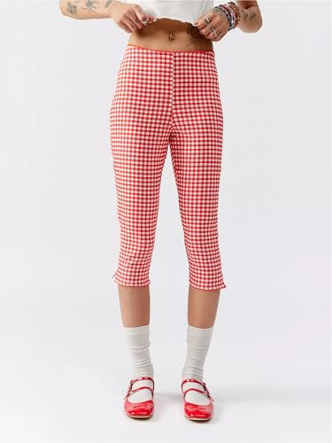 Y2k Capri Pants for Women Trendy Gingham Skinny Cropped Pants High Waist Pull On Capris Trousers Coquette Streetwear 2
