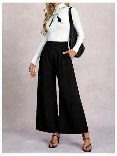 • Features: High waisted, elastic waistband, straight leg, pleated design, loose fit, solid color, pockets, palazzo pants for women