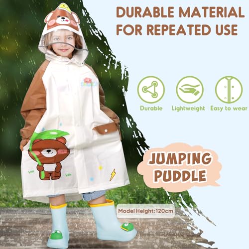 ANYOO Kids Rain Poncho with Hood Reusable Rain Jacket Lightweight & Durable Raincoats for Boys and Girls for Travel Outdoor 4