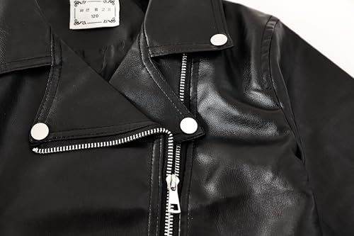 Girls PU Leather Moto Jacket - Soft Faux Leather Cropped with Notched Collar Coat, Biker Jacket for Toddler to Kids 5