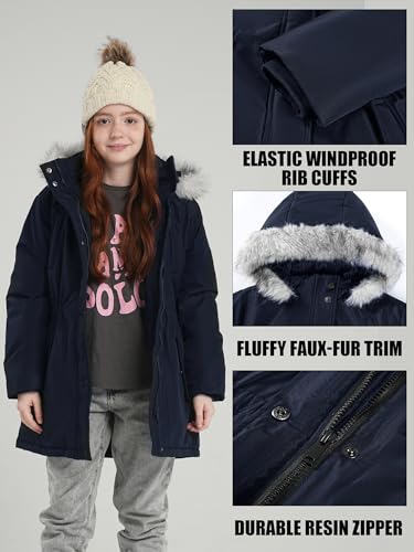 SOLOCOTE Girls Winter Coat Water-resistant Heavyweight Ski Jacket Faux Down Hooded Long Parka for Kids 5