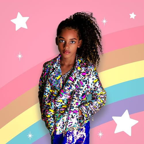 • EYE-CATCHING FLIP SEQUIN DESIGN - Stand out in style with our girls' biker jacket featuring silver leopard flip sequins. The sequins add a touch of sparkle and fun to any outfit, making it perfect for fashion-forward girls