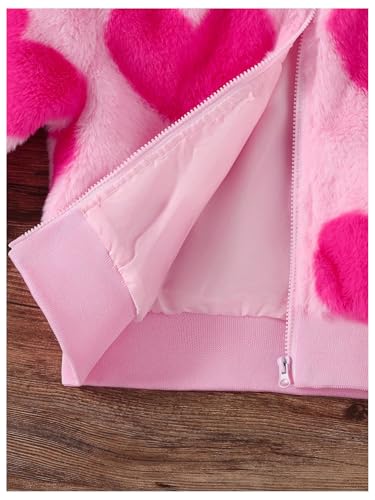 WDIRARA Girl's Cute Heart Pattern Fleece Jacket Zip Up Mock Neck Long Sleeve Teddy Outerwear Coat 6