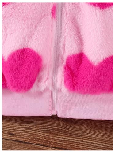 WDIRARA Girl's Cute Heart Pattern Fleece Jacket Zip Up Mock Neck Long Sleeve Teddy Outerwear Coat 3