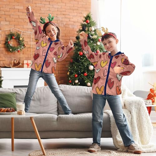 Colorful Hearts on Pink Toddler Fleece Jacket Girl Boys Hooded Fleece Jacket Coat Warm Outwear Zip-up 3-10T 5