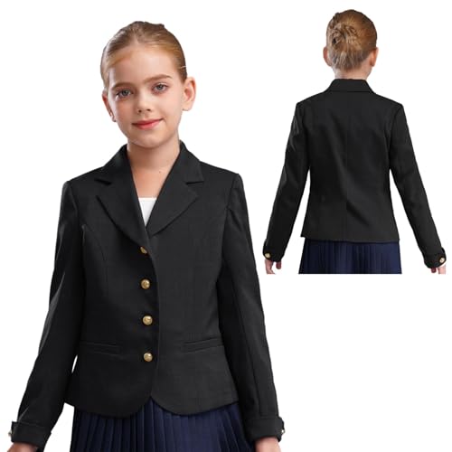 Aislor Kids Girls Blazer Jacket Solid Color School Uniform Lapel Long Sleeve Button Down Suit Jacket with Pockets 1