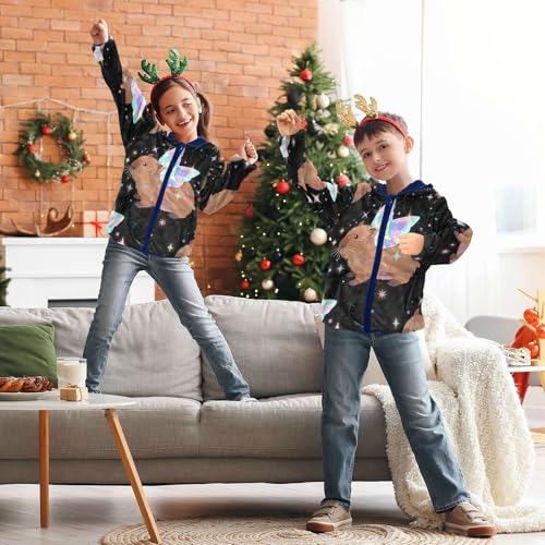 Magical Guinea Pig with Wings Toddler Fleece Jacket Girl Boys Hooded Fleece Jacket Coat Warm Outwear Zip-up 3-10T 3