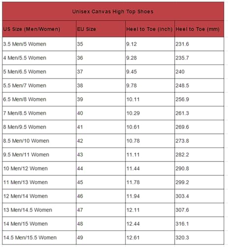 • Comfortable:The high top canvas sneakers use breathable canvas upper,it keeps your feet dry and stay comfort all the time