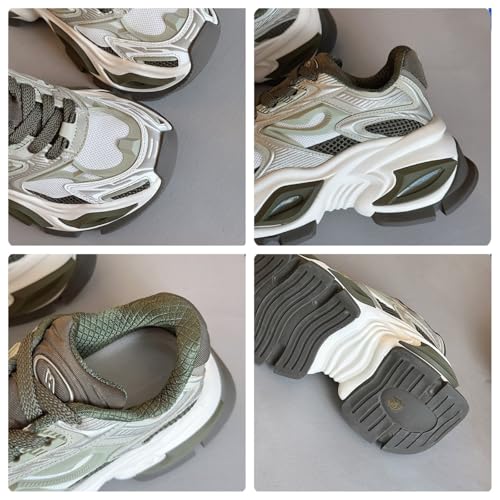 Men's Fashion Breathable Mesh Leather Lace Up Chunky Platform Sneakers Casual Non Slip Round Toe Driving Walking Tennis Running Sneakers 6
