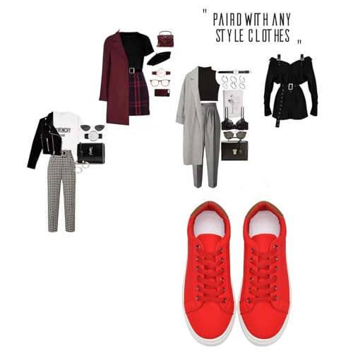 • 【Classic Style】Classic canvas shoes style, give you a comfort experience. Lace up casual shoes prefect fit any kind of clothes, like jeans, shorts, shirts, sweaters, etc., you don't have to worry about which pair of shoes to wear when you want to go out.