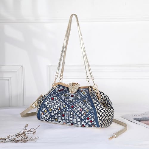 HOT ! Bling Rhinestone Handbags for Women Woven Clutch Purses Jean Purse Crossbody Denim Evening Bag