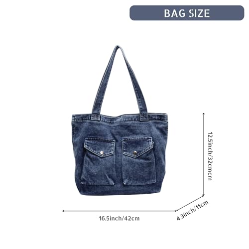 HOT ! Stylish Denim Tote Bag for Women, Lightweight Jean Handbag Purse with Multiple Pockets