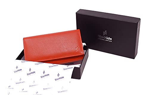 Ladies RFID Clutch Wallet Soft Genuine Leather Flap Over Women Purse Credit Cardholder, ID And Coin Organizer 5510 (Red) 5
