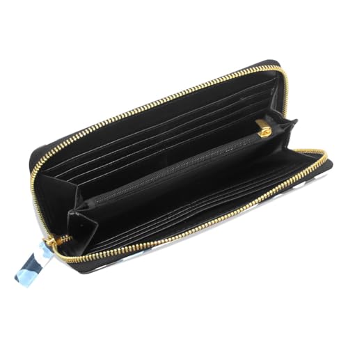 Long Wallets Leather Bifold Wallet for Women Blue Camouflage with Zipper Credit Card Holder Large Capacity 4
