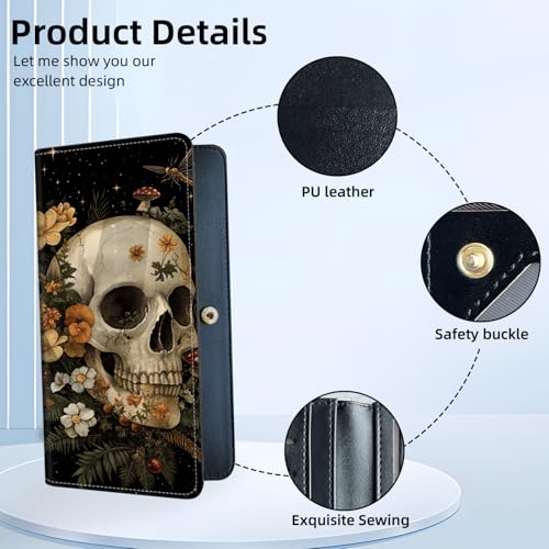 More information about Womens Wallet,RFID Blocking Credit Card Slim Thin Holder,Long Bifold PU Leather Card Organizer,Cash Clutch Billfold Pocket Ladies Minimalist Travel Wallets,Flowers Skulls
