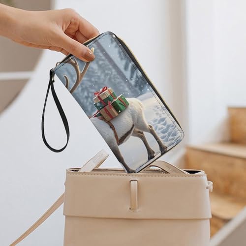 Cute Xmas Reindeer Wallets for Women Long Wristlet Leather Wallets with Zipper Holder Large Capacity Coin Pocket 1