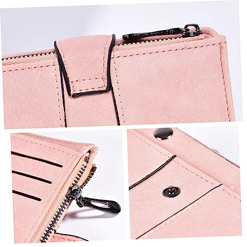 SAFIGLE Fashionable Women's Small Wallet Short Storage Purse for Lady Rfid Zipper Buckle Design Pu Material Many Slots Easy to Organize Money Cards Compact Portable Pink 3