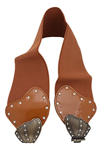• Color : Brown faux leather and elastic waistband + antique rusty gold metal buckle + silver rhinestones