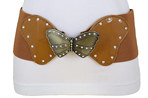 TrendyFashionJewelry Women Fashion Elastic Wide Waistband Belt Hip High Waist Gold Metal Butterfly Buckle S M , Black + Gold 6