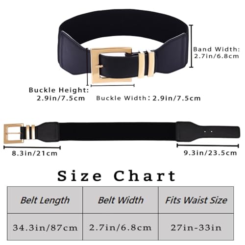 More information about Women Elastic Wide Waist Belt Square Gold Buckle Belts for Dress Stretchy Ladies Belt