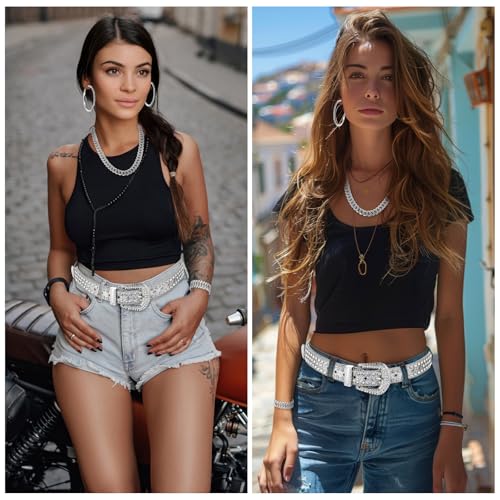 • Women Rhinestone Jewelry Set: you will receive 1 shimmering rhinestone belt, 1 pair of stunning rhinestone hoop earrings, 1 dazzling rhinestone necklace, and 1 chic rhinestone bracelet; With this comprehensive package, you have versatile accessories at your fingertips to effortlessly elevate any outfit wherever you go
