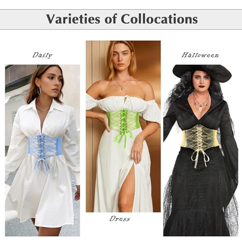 • [Versatile Accessories] Women wide corset belts are available in varieties of colors , pairing with dresses, tunics, blouses, and more, this fashion cute belt effortlessly transitions from casual daywear to elegant evening attire. The classic lace-up design in the middle is popular and can be worn with shirts, dresses in Halloween, renaissance festivals, parties, music festivals and cosplay party.
