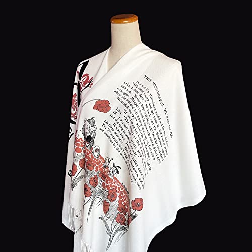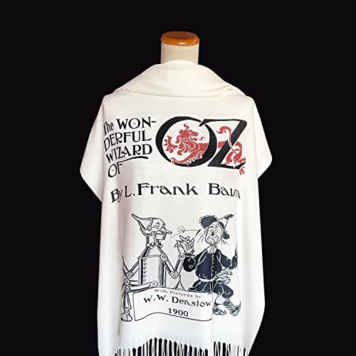 • A classic American children's novel written by author L. Frank Baum and illustrated by W. W. Denslow, originally published in 1900. Book pages printed on a soft, Off-White colored acrylic shawl.