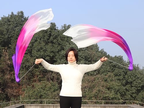 Winged Sirenny Spinning 53" Sheer Silk Veil Poi Ball, Play Silk Scarf for Belly Dance and Worship Praise 2