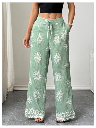 • Features: Womens casual pants, allover print, mid waist, drawstring waist, pocket, wide leg, making you look elegant and charming in any relaxed setting