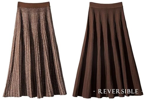 HOT ! CHARTOU Women's Winter Reversible Stretchy Waist Knitted A Line Pleated Midi Skirt