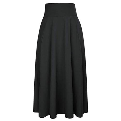 HOT ! Women's Casual High-Waisted Pleated Maxi Skirt with Pockets,Solid Long Vintage Strappy Skirt