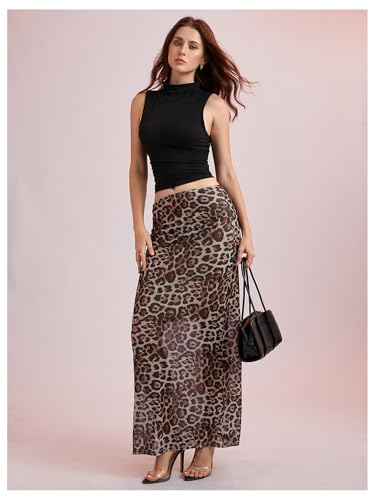 More information about WDIRARA Women's Leopard Print Mesh Skirt Ruched Split Thigh Low Waist Maxi Skirts