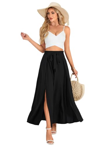 • Features: Elasticated waist with belt, high waisted, side split pants, A-line, unique wide waistband details, beach pants with cute ruffle for women summer, much more comfy on waist, a relaxed fit ladies skirts.