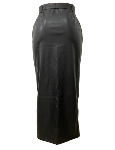 More information about Women Button Down Front Slit Faux PU Leather Maxi Long Skirt with Belt