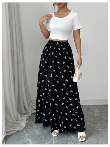 • Features: flowy maxi skirt for women, ruffle hem, unique bow pattern, elastic waistband for a snug fit, high waisted, flared