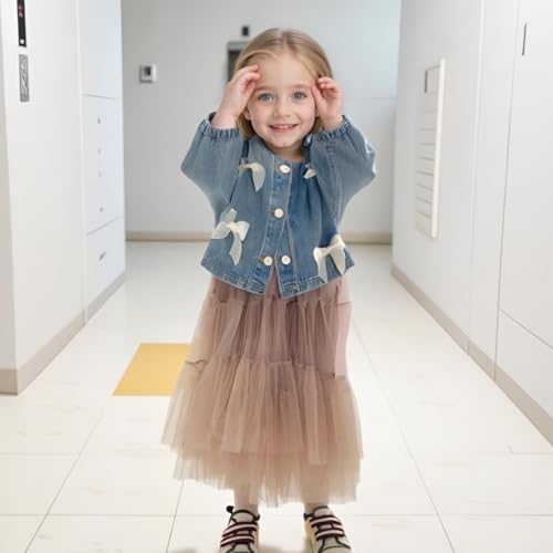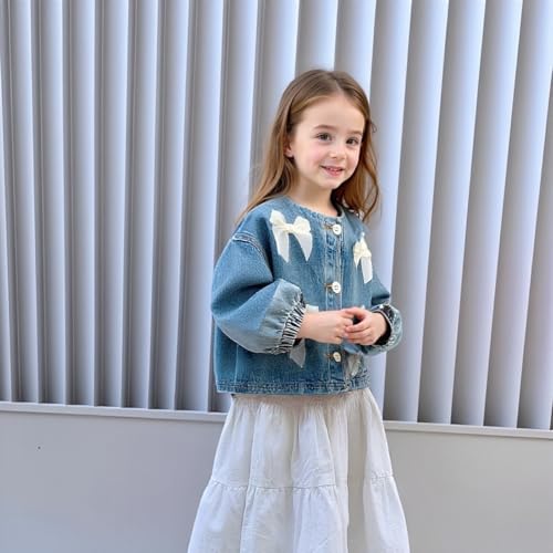 Girls Denim Jacket,Children's Versatile Outerwear,Bow Tie Jeans Jacket,Birthday Gift 5