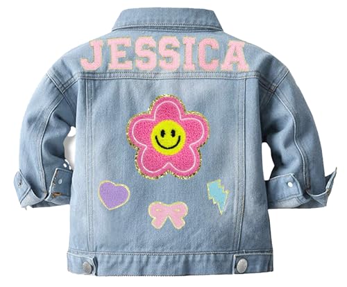 HOT ! Personalized Kids Girls Boys Denim Jacket with Name,Brithday Gifts Patch Jean Jacket,Long Sleeve Button Down Outerwear for Girls Boys 1-13years