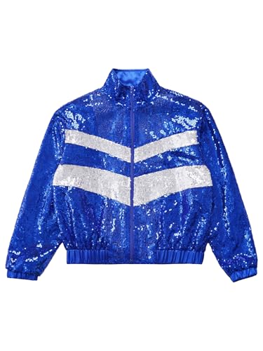 easyforever Kids Girls Sequin Long Sleeve Zipper Bomber Jacket Sparkle Hip Hop Jazz Dance Performance Coat Outwear 5