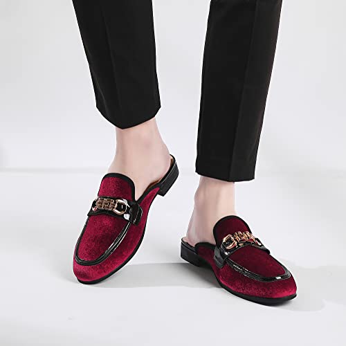 • 【Comfortable & Breathable 】Our men's backless loafers are made of the high quality artificial Velvet, soft and abrasion resistance.Make a stylish style statement wearing the open-back loafers with fashion Gold Chain design. Decorate a slim shape golden metal Chain on the classic velvet mule loafers, which provides a perfect opportunity to show your personality.