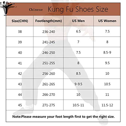 • Flexibility and Durability:Canvas Top, Anti Slip Rubber Sole,These kung fu shoes have no irritating semll and are more healthy to feet.