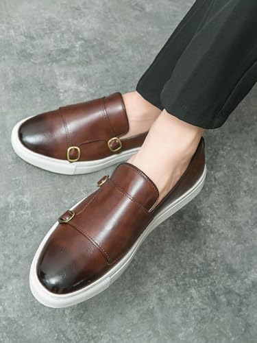 Santimon Men Dress Shoes Double Monk Straps Classic Round Toe Modern Formal Leather Slip-on Shoes for Men 7