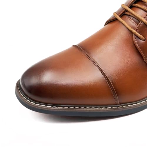 • Classic Design: These oxford dress shoes feature a polished leather upper with a cap-toe design. And the lace-up closure provides customizable fit and adds a touch of refinement to any outfit, while the overall look maintains a formal and classic vibe.